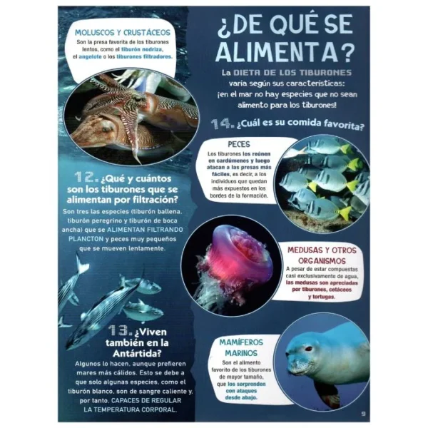 Sumérgete en las profundidades marinas para descubrir a los DEPREDADORES MÁS TEMIBLES: desde el feroz tiburón blanco hasta el impresionante tiburón peregrino, desde el gigantesco tiburón ballena hasta el diminuto tiburón linterna enano. Un libro lleno de información y curiosidades para aprender cómo y dónde viven, cómo cazan, se reproducen y se desplazan estas fascinantes criaturas marinas.